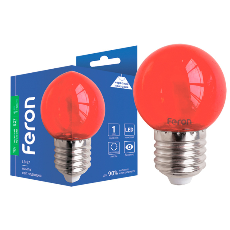 Описание Світлодіодна декоративна лампа Feron LB-37 1Вт E27 красная прозрачная