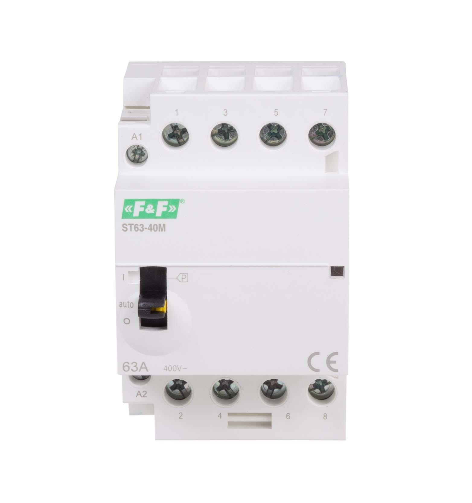 Описание Контактор модульный F&F ST63-40-M, 4NO, 40А