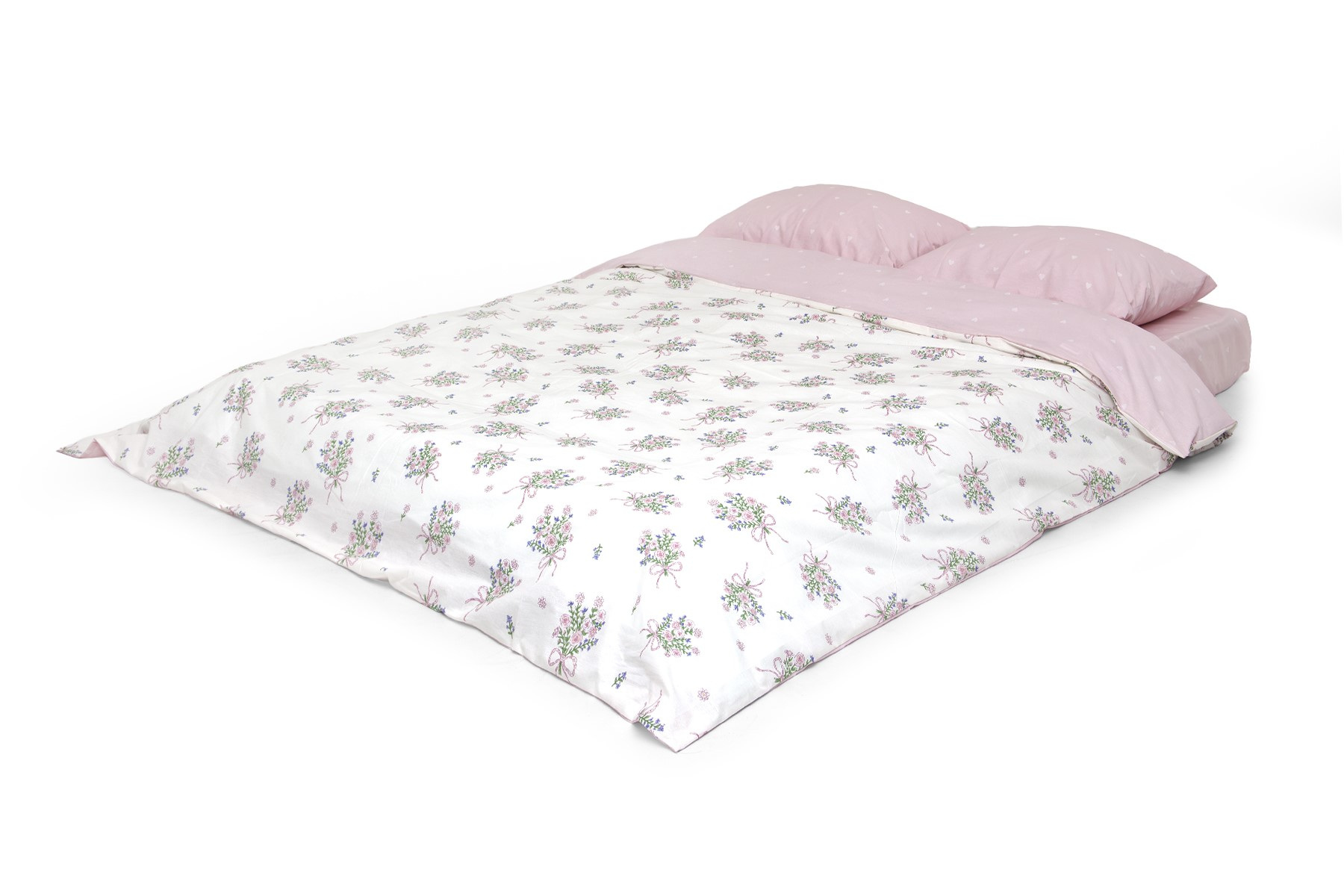 Описание Комплект постільної білизни Юнона-5 (двоспальний, ранфорс, наволочки: 50х70 см 2 шт, букети з сердечками) IMI
