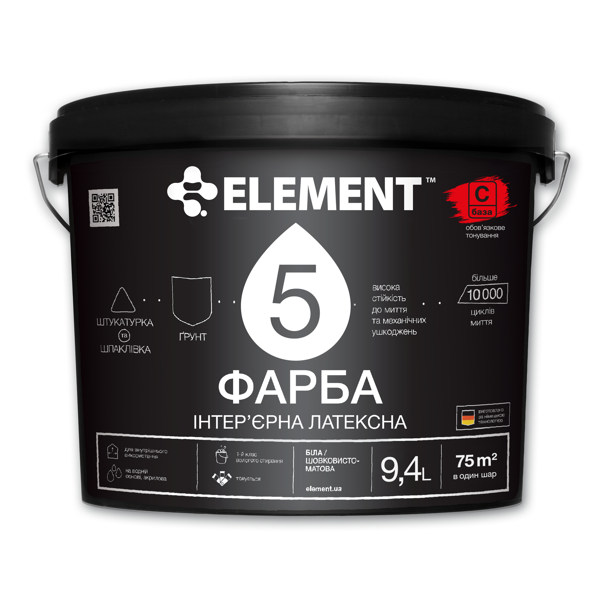 Интерьерная водно-дисперсионная латексная краска ELEMENT 5 база C 9,4 л имеет высокую износостойкость. Она создает долговечное покрытие, устойчивое к механическим повреждениям, а также мокрому истиранию. Это тиксотропная краска, которая не растекается и легко наносится на поверхность.