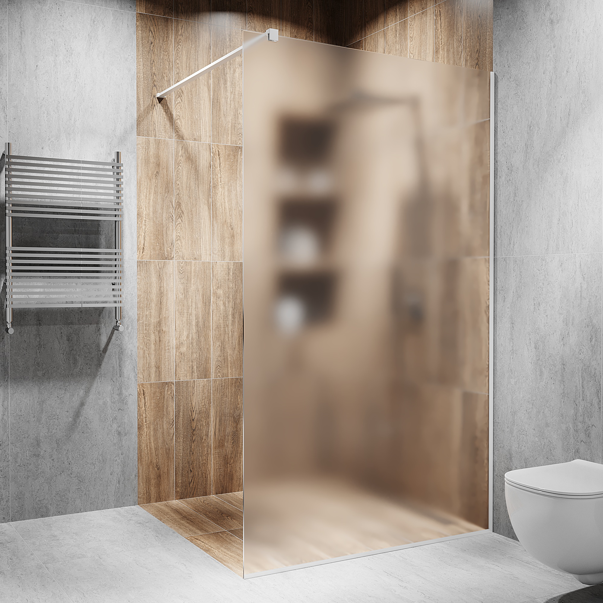 Описание Скляна душова перегородка 2000х900мм. скло: діамант, матове, колір фурнітури: white - Біла матова