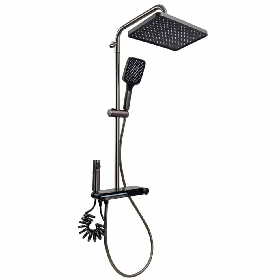 Душова колона Platinex AW155Q у чорному кольорі – це сучасне та технологічне рішення для душової зони, що поєднує стильний дизайн, зручність та безпеку. Модель оснащена електронним індикатором температури, який відображає поточну температуру води на вбудованому дисплеї, що живиться від водного потоку, що унеможливлює батареї або підключення до електромережі. Колона виконана з міцної латуні з надійним PVD-покриттям чорного кольору, стійким до корозії, подряпин та стирання.