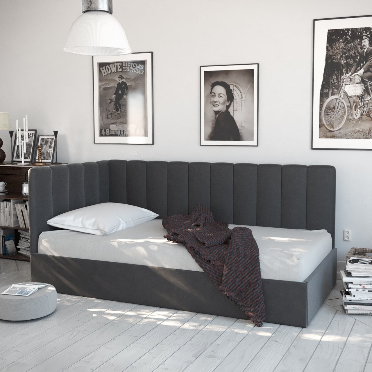 Односпальне ліжко-софа Бакарді Sentenzo 90х190 см з підйомним механізмом та м'якою спинкою кутова