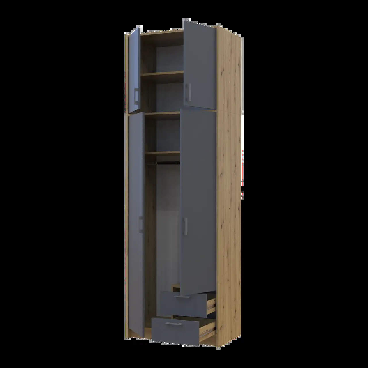 Шафа для одягу та білизни Doros Ронді тридверна висока з антресолю Дуб Артизан/ Графіт 3 ДСП 121х52х260
