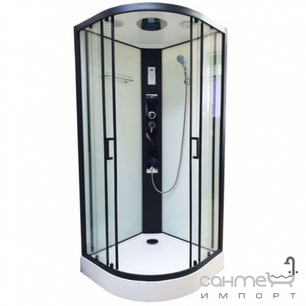 Полукруглый гидромассажный бокс на поддоне Veronis VE-BN4100WHITEBL черный/прозрачное стекло