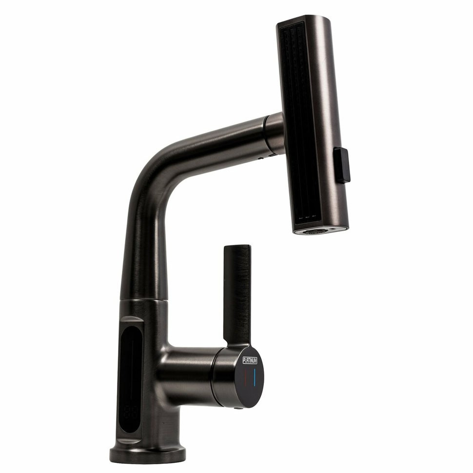 Змішувач для умивальника Platinex A239 з індикатором температури та висувним виливом, Чорний