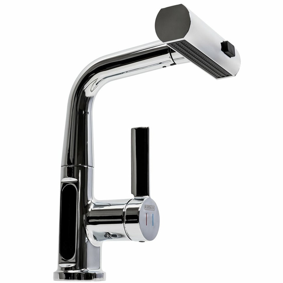 Описание Змішувач для умивальника Platinex A240 з індикатором температури та висувним виливом, Чорний