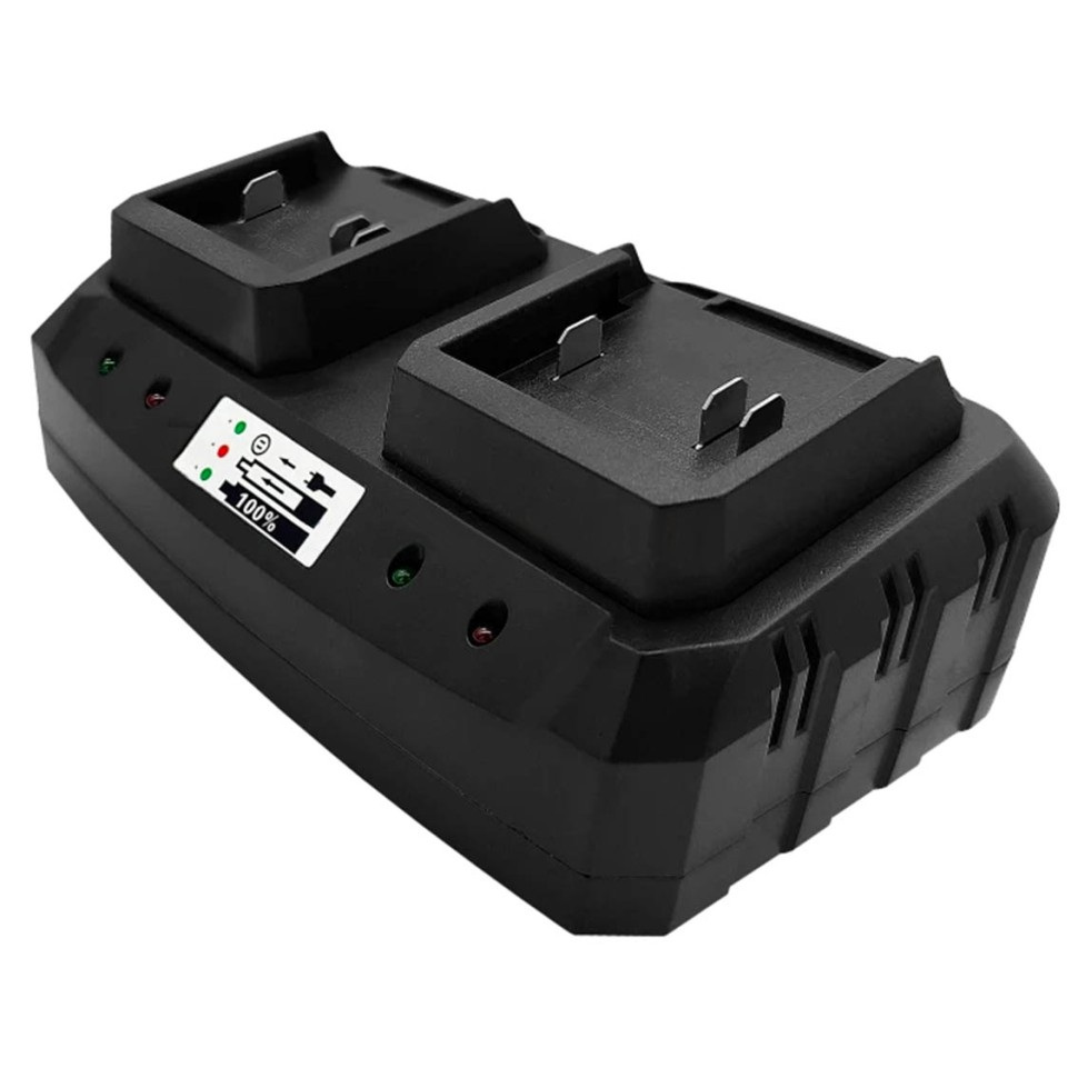 Устройство работает при напряжении 230 вольт и частоте 50 Гц, что делает его совместимым со стандартными источниками питания в большинстве стран. Зарядный ток составляет 2,4 ампера для каждой батареи, что способствует быстрой зарядке аккумуляторов. Выходное напряжение устройства – 20 вольт, что идеально соответствует техническим требованиям наших аккумуляторов.