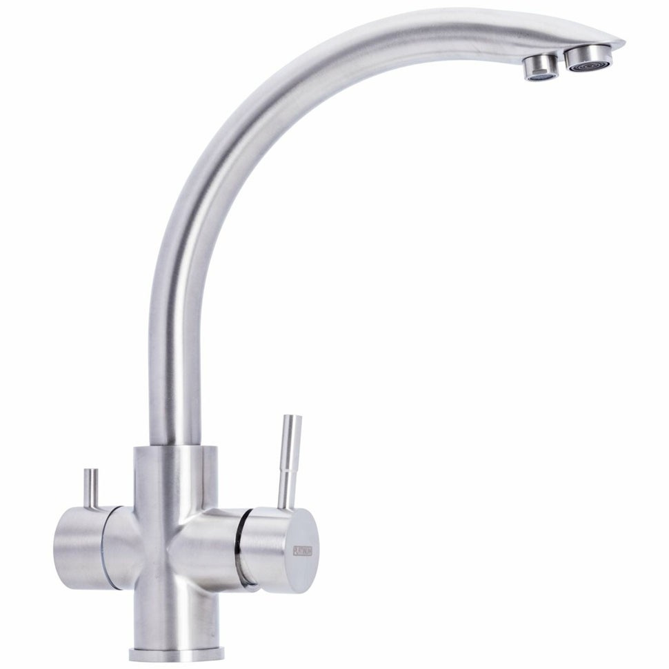 Змішувач для кухні Platinex KT 6609 у кольорі «нерж.» - це універсальне та практичне рішення для тих, хто використовує системи очищення води. Модель виконана з міцних та безпечних матеріалів, корпус виготовлений з нерж. сталі з декоративним білим покриттям, стійким до вологи, корозії, подряпин та побутової хімії. Особливістю даної моделі є наявність окремого каналу і додаткового виливу для подачі очищеної води, що безпосередньо підключається до фільтра або системи зворотного осмосу. Це дозволяє використовувати один змішувач як для звичайної водопровідної води, так і для питної без необхідності встановлювати додатковий кран. Основний вилив зручно вигнутий, забезпечує комфортний доступ до всієї поверхні миття, а вбудований аератор формує м'який та економічний струмінь. Управління здійснюється двома рукоятками: одна регулює подачу гарячої та холодної води, друга – подачу фільтрованої. Змішувач Platinex KT 6609 - це зручне та естетичне рішення для кухні, що забезпечує комфорт та функціональність при щоденному використанні, особливо у поєднанні із системою водоочищення.