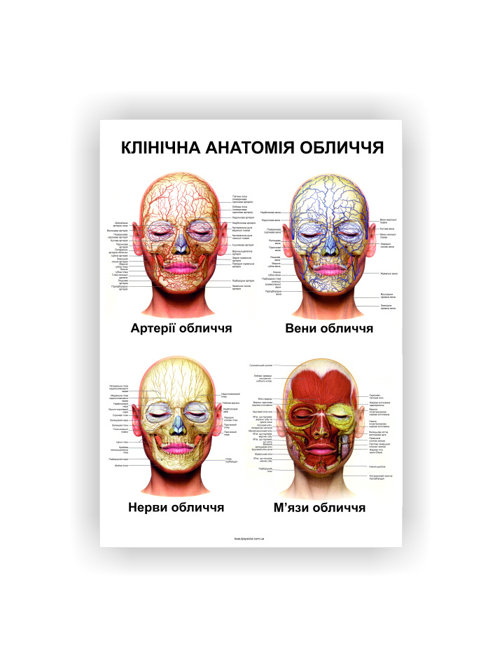 Плакат “Клиническая анатомия лица” в косметический кабинет.