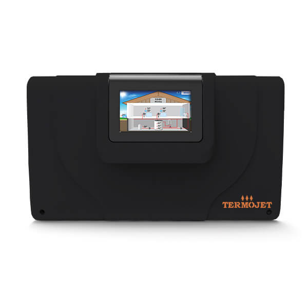 Практична та високоефективна автоматика котельні від виробника Termojet повноцінно використовується для керування опалювальною системою у практичному режимі, залежному від погоди. Ця котельна автоматика оснащена вбудованим екраном, що має діагональ 4,3 дюйми. Даний прилад дозволяє одночасно здійснювати керування кількома виробниками тепла, 2 роздільними контурами змішувачів або системою гарячого водопостачання. Має невеликі габаритні розміри, просто встановлюється. Всі елементи, з яких зроблено автоматику котельні, виготовляються з високоякісних матеріалів, відповідно до європейських стандартів якості. Має дуже зручний екран, на якому відображаються усі показники. До електромережі підключається за допомогою дроту. Цю автоматику котельні можна використовувати в поєднанні з сучасними системами «розумний будинок». Автоматика котельні від виробника Termojet використовується для керування опалювальними системами заміського будинку, котеджу чи квартири. Відмінні риси та переваги автоматики котельні: За допомогою даного приладу можна керувати одночасно кількома виробниками тепла, а також контуром водопостачання гарячої води та двома прямими окремими контурами. Крім цього їм можна здійснювати управління рециркуляцією водопостачання гарячої води і двома окремими контурами, що змішують. Контролер має можливість під єднання віддаленого доступу. У ній є 2 налаштовуються окремих безпотенційних входів (вкл/вкл) і 2 окремих входу, що налаштовуються під напругу. Контролер Termojet LIGHT має можливість підключення розширення до чотирьох контурів змішувачів.