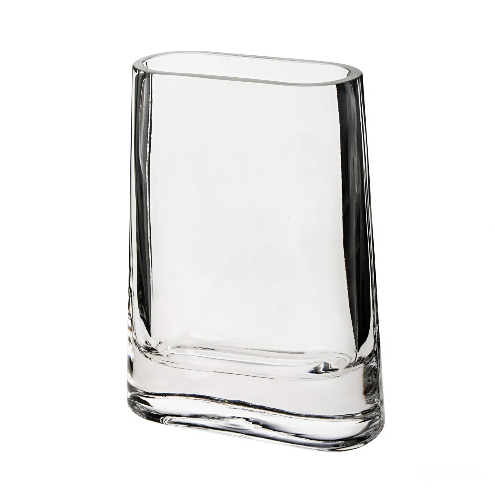 Стеклянная ваза для цветов изготовлена из прозрачного стекла высокого качества. Ваза имеет четкие геометрические линии и простой, элегантный дизайн, что позволяет ей органично вписываться в различные интерьеры. Ее размеры: высота 15.8 см, длина 9.5 см, ширина 5 см, что делает ее подходящей для разнообразных цветочных композиций.