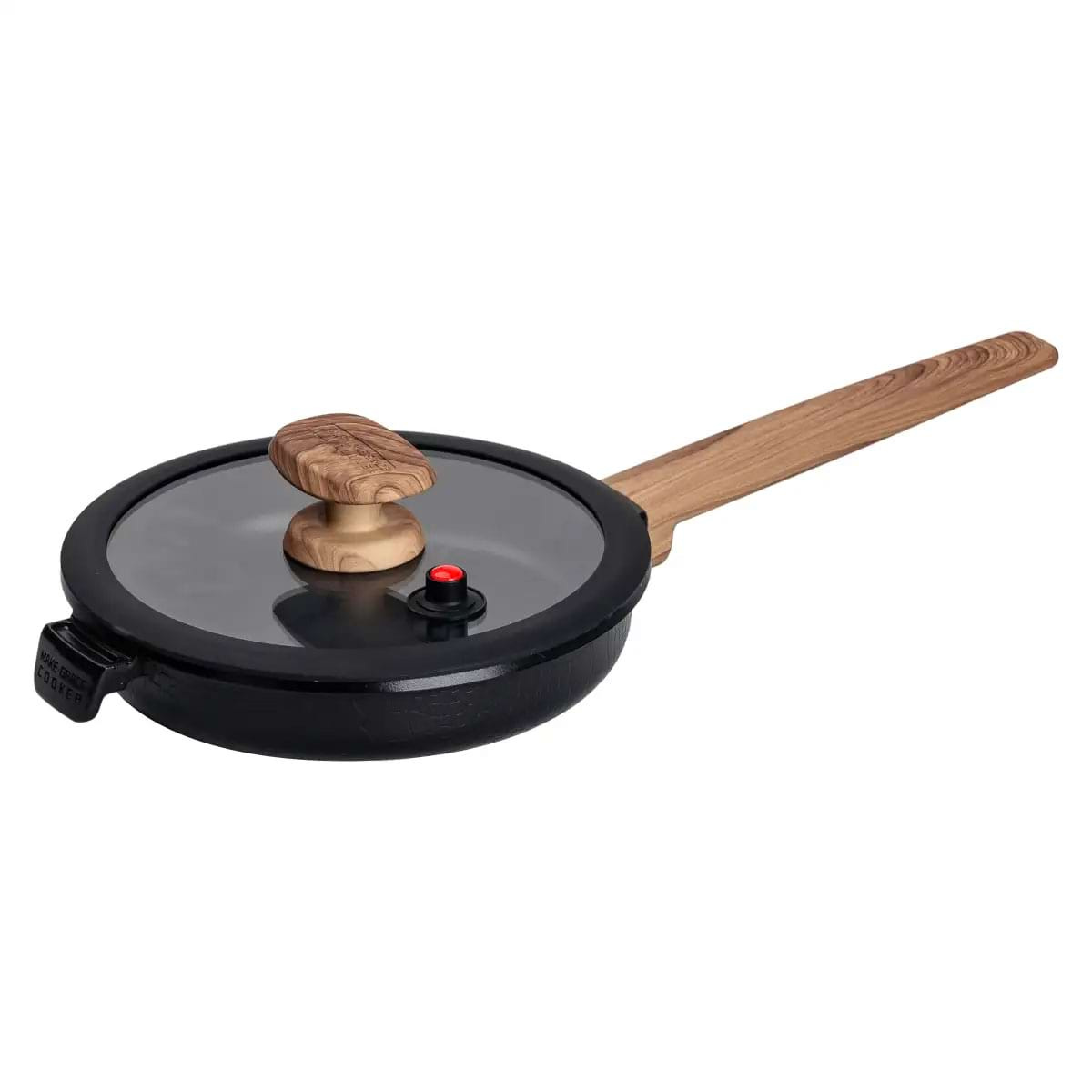 Эта сковорода не только функциональна, но и стильная и удобная. Прочный алюминиевый корпус гарантирует отличную теплопроводность, что значительно экономит ваше время на кухне. Крышка из жаропрочного стекла с пароотводом помогает поддерживать оптимальный уровень влаги, не выпуская лишний пар, что сохраняет блюда сочными. Особого внимания заслуживает бакелитовая ручка, которая не нагревается, обеспечивая безопасное и комфортное пользование.