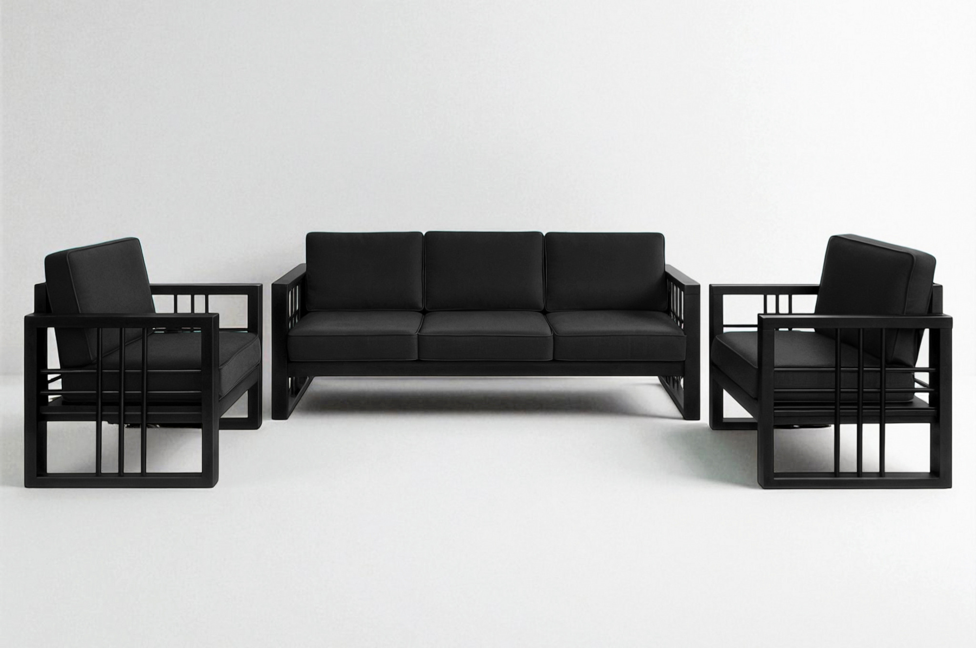 Комплект каркасной металлической мебели «Вердон» (диван и два кресла) — это стильная и прочная мебель в стиле Лофт, которая одинаково хорошо подходит для гостиной, офиса, лаунж-зоны, террасы или зоны ожидания. Благодаря универсальному дизайну комплект гармонично сочетается как с классическими, так и с современными интерьерами, создавая комфортное пространство для отдыха и общения.