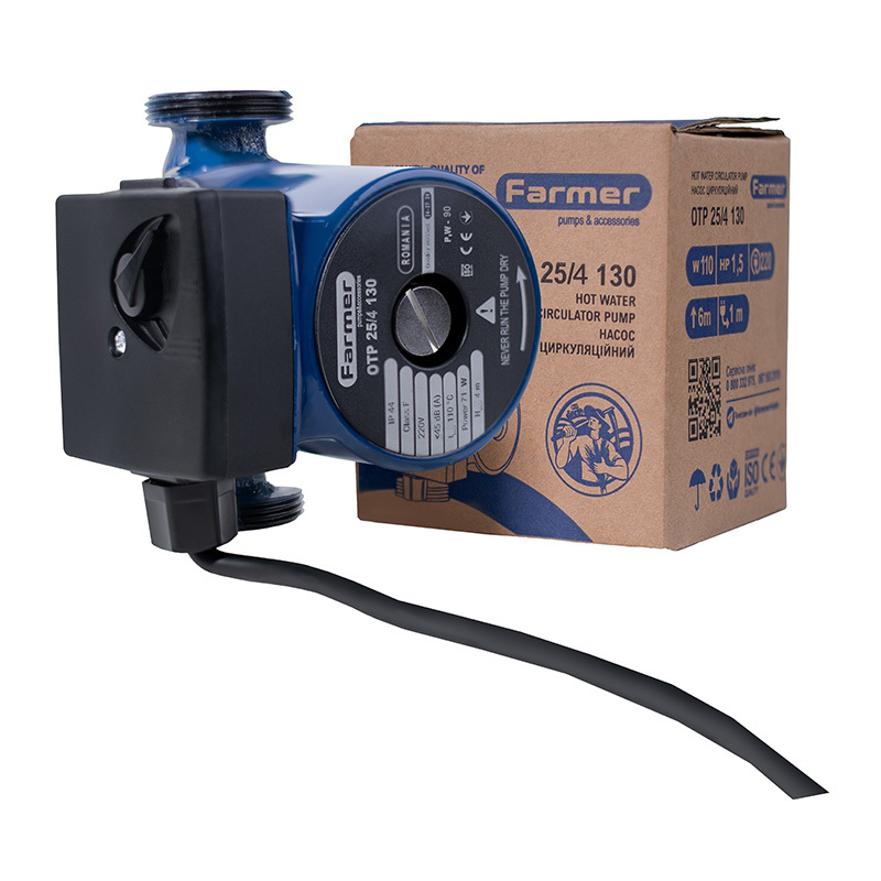 Насос циркуляционный Farmer 25/4-130, 71 Вт, H 4м Q 25л/мин