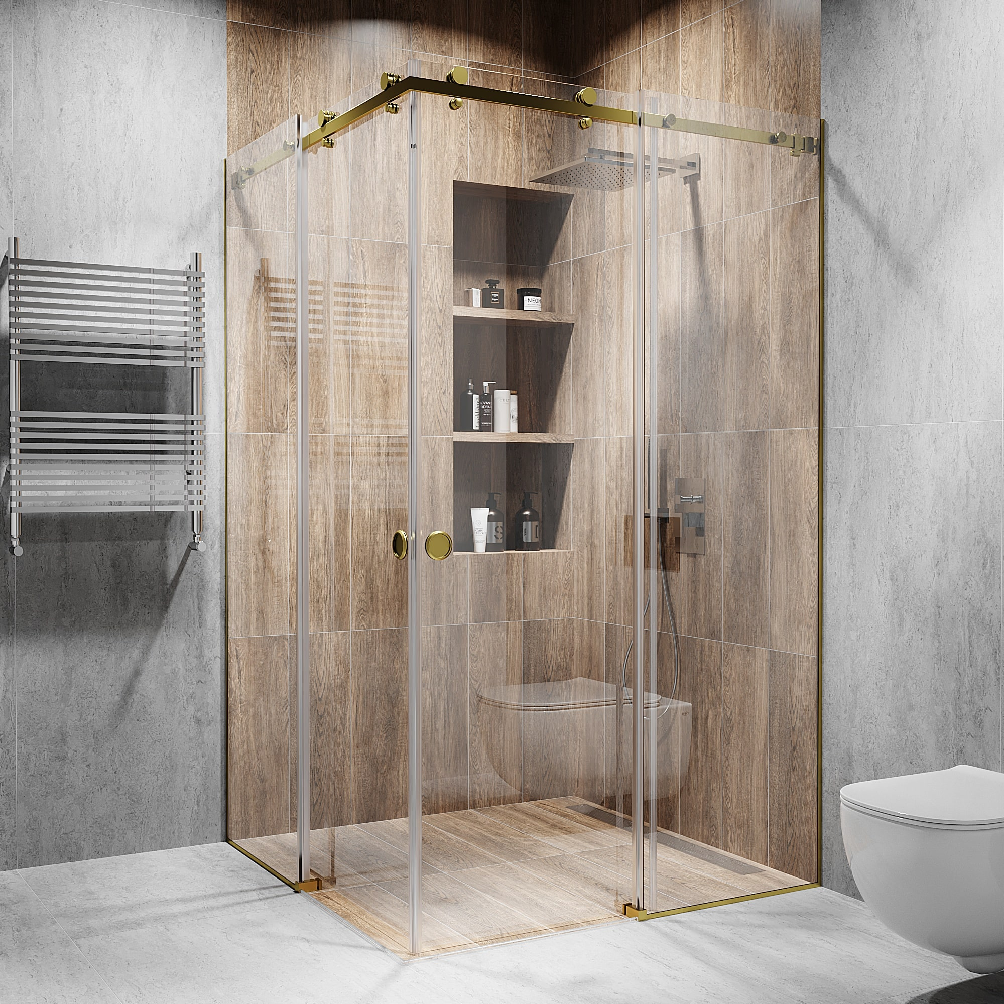 Кутова розсувна душова кабіна з двома дверима 2000 мм, Діамант, Без матування, Gold - Золото поліроване