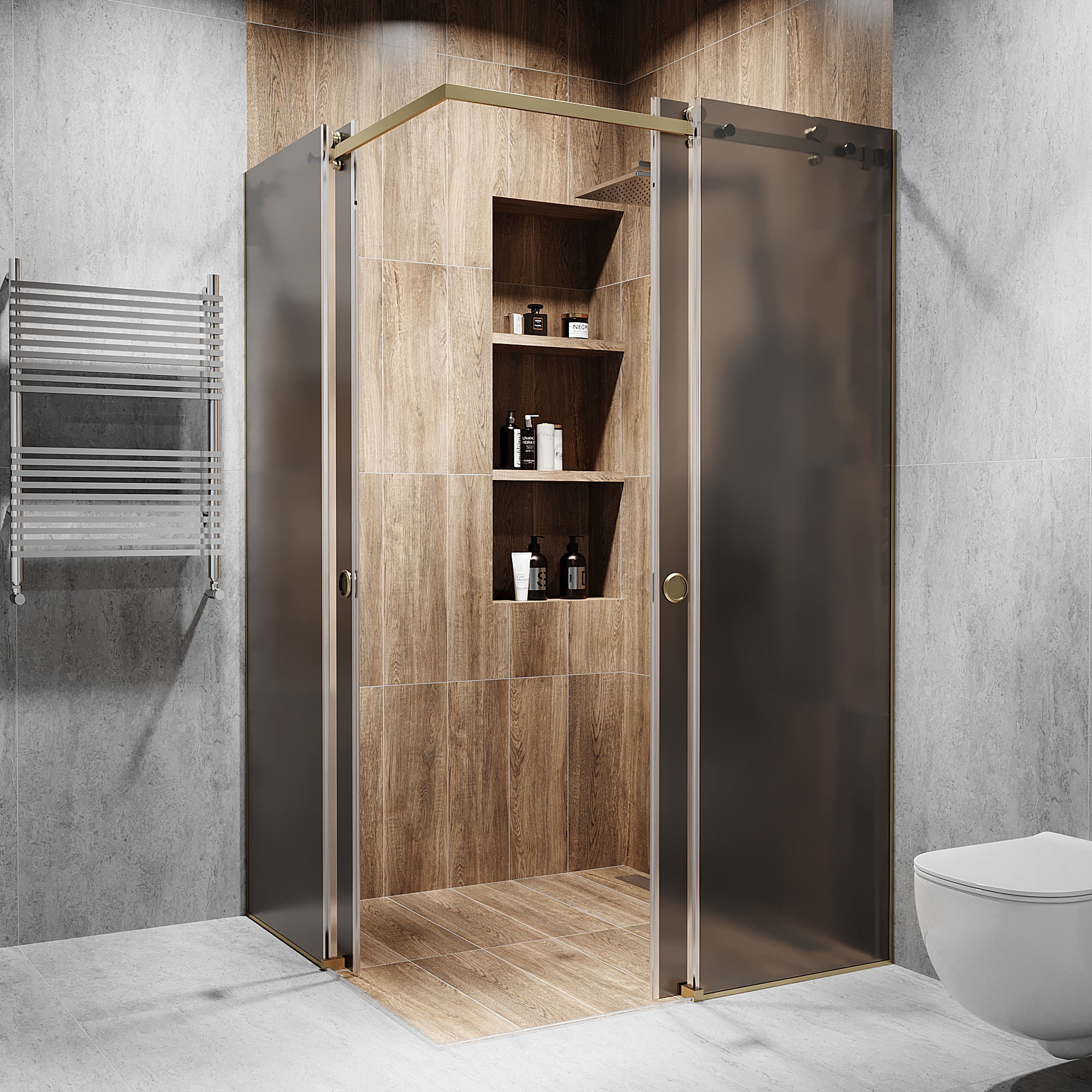Описание Кутова розсувна душова кабіна з двома дверима 2000 мм, Графіт, Матоване, Bronze - Бронза