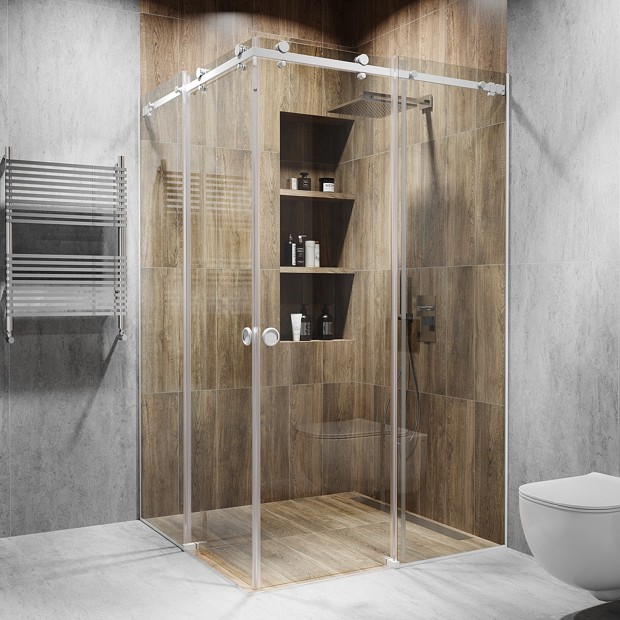 Розсувна душова кабіна Model-B - це комфорт і продуманість у кожній деталі. Прямокутна кутова конструкція з двома стаціонарними панелями і розсувними дверцятами робить її зручною навіть у невеликих ванних кімнатах. Двері плавно ковзають по надійній верхній направляючій, без ривків і шуму, забезпечуючи легкий доступ і комфортне використання. Ця модель створена для тих, хто цінує не тільки практичність, а й зовнішній вигляд. Обирайте скло, яке підкреслить стиль вашого інтер'єру: класична прозорість, глибина графіту, тепла бронза або ефектний «Діамант». А фурнітура - від блискучої полірованої сталі до строгого чорного або теплого золотого відтінку - завершить образ. Model-B створена із загартованого скла, яке витримує високі навантаження і безпечне в експлуатації. За нею легко доглядати, на ній не залишаються розводи, а сучасний механізм відкривання робить її надійною на роки вперед. Проста установка і великий вибір розмірів дозволяють адаптувати кабіну під будь-який простір. В Alfa Glass ми знаємо, що кожен інтер'єр унікальний, тому пропонуємо виготовлення душових кабін на замовлення - в будь-якому розмірі, з будь-яким видом скла і фурнітури. Хочете нестандартну форму, тоноване скло або ексклюзивне покриття? Реалізуємо будь-які ідеї! Ми беремо на себе повний цикл - від замірів до встановлення «під ключ», гарантуючи бездоганну якість, точність підгонки і відповідність бюджету.