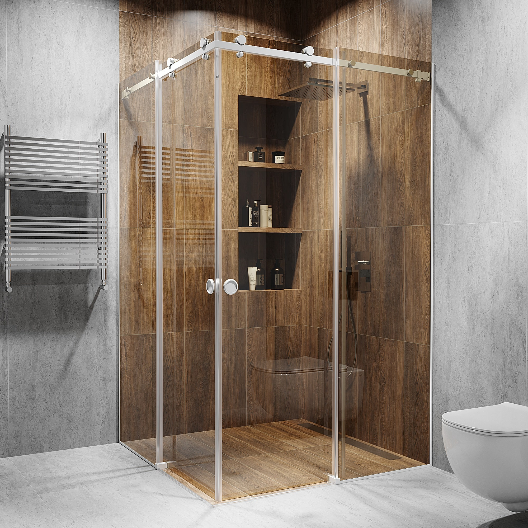 Розсувна душова кабіна Model-B - це комфорт і продуманість у кожній деталі. Прямокутна кутова конструкція з двома стаціонарними панелями і розсувними дверцятами робить її зручною навіть у невеликих ванних кімнатах. Двері плавно ковзають по надійній верхній направляючій, без ривків і шуму, забезпечуючи легкий доступ і комфортне використання. Ця модель створена для тих, хто цінує не тільки практичність, а й зовнішній вигляд. Обирайте скло, яке підкреслить стиль вашого інтер'єру: класична прозорість, глибина графіту, тепла бронза або ефектний «Діамант». А фурнітура - від блискучої полірованої сталі до строгого чорного або теплого золотого відтінку - завершить образ. Model-B створена із загартованого скла, яке витримує високі навантаження і безпечне в експлуатації. За нею легко доглядати, на ній не залишаються розводи, а сучасний механізм відкривання робить її надійною на роки вперед. Проста установка і великий вибір розмірів дозволяють адаптувати кабіну під будь-який простір. В Alfa Glass ми знаємо, що кожен інтер'єр унікальний, тому пропонуємо виготовлення душових кабін на замовлення - в будь-якому розмірі, з будь-яким видом скла і фурнітури. Хочете нестандартну форму, тоноване скло або ексклюзивне покриття? Реалізуємо будь-які ідеї! Ми беремо на себе повний цикл - від замірів до встановлення «під ключ», гарантуючи бездоганну якість, точність підгонки і відповідність бюджету.