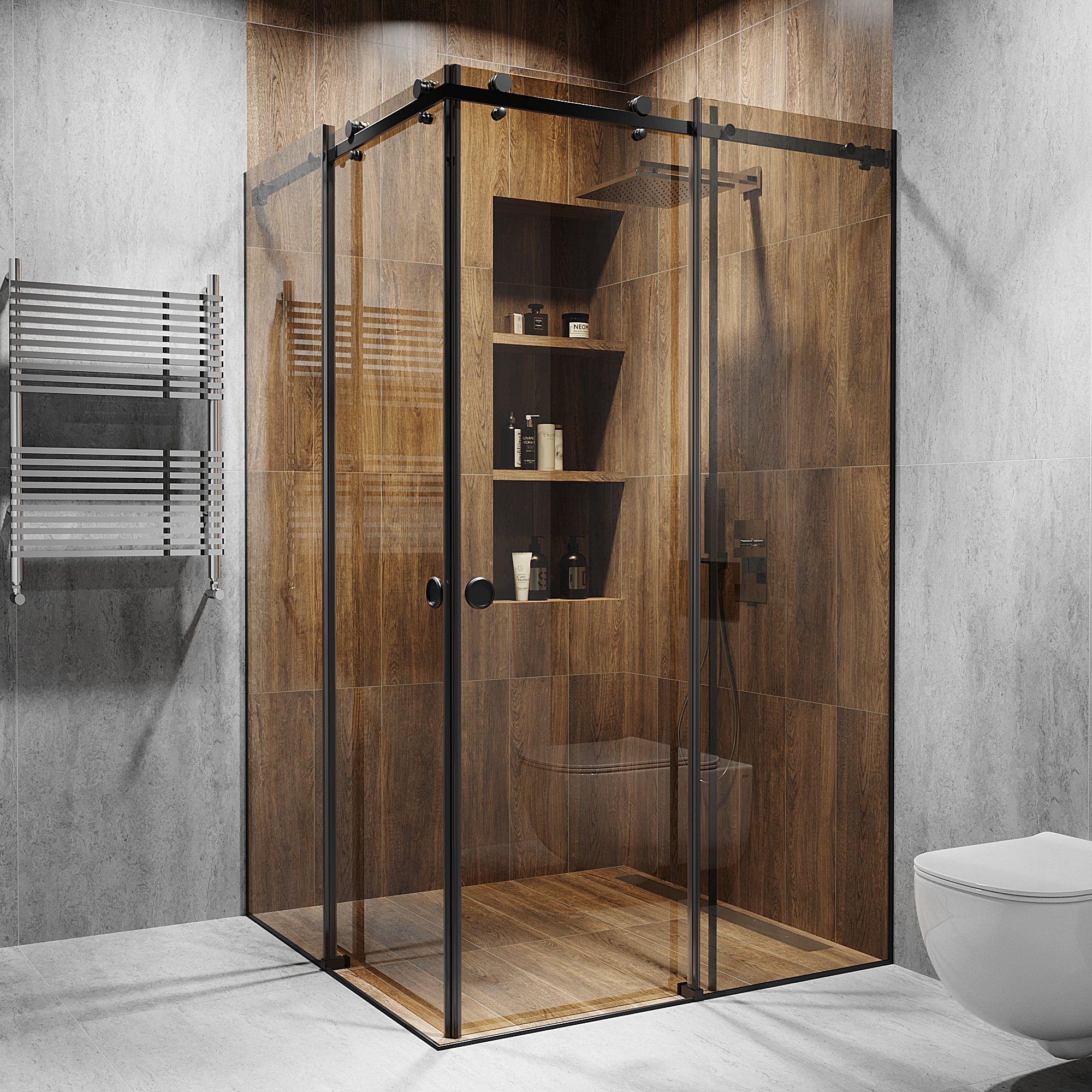 Описание Кутова розсувна душова кабіна з двома дверима 2000 мм, Бронза, Без матування, Black - Чорна матова