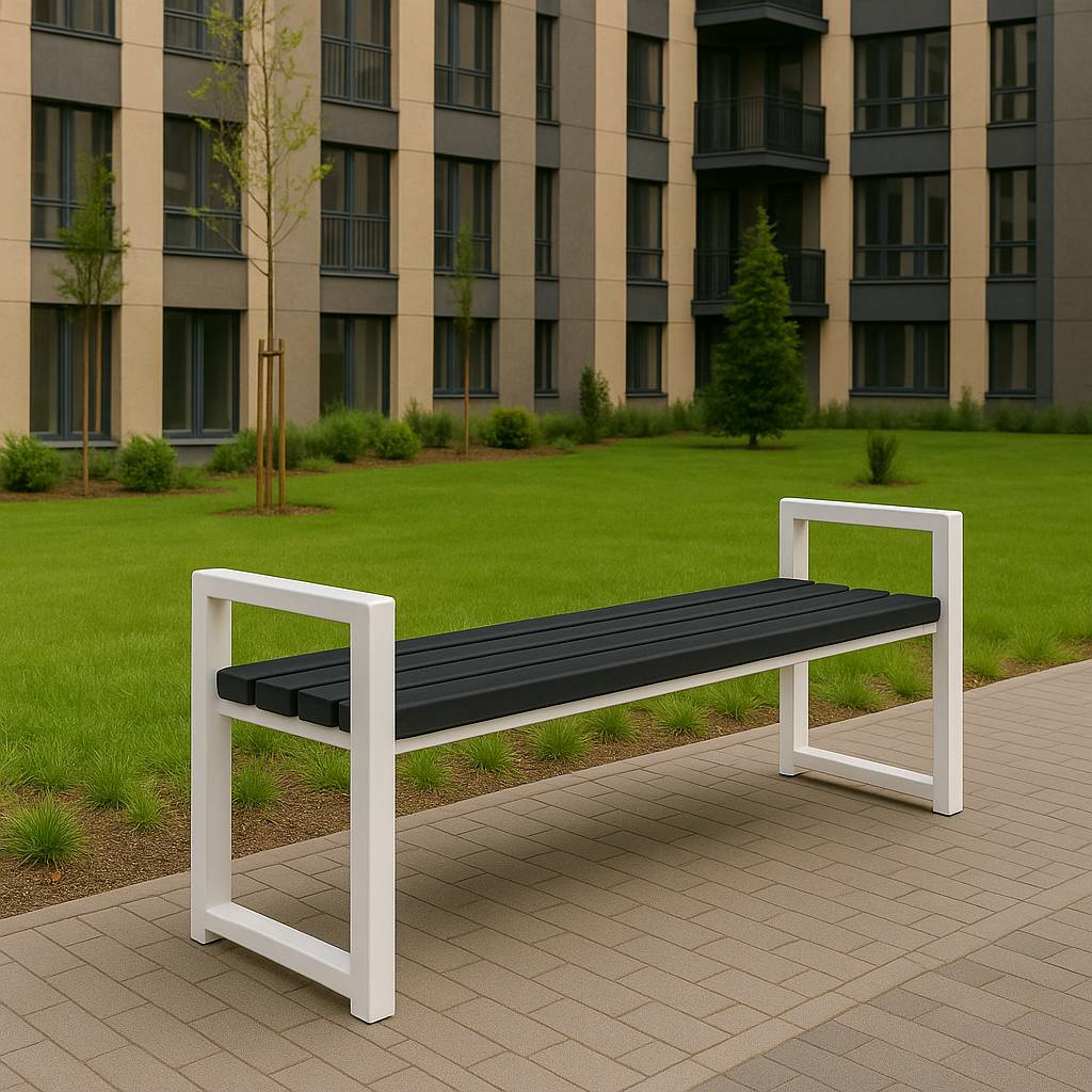 Лавка с ПВХ профиля Tobi Sho Модерн без спинки для парка, сада, сквера, 1514х598х415 мм Бело-черный