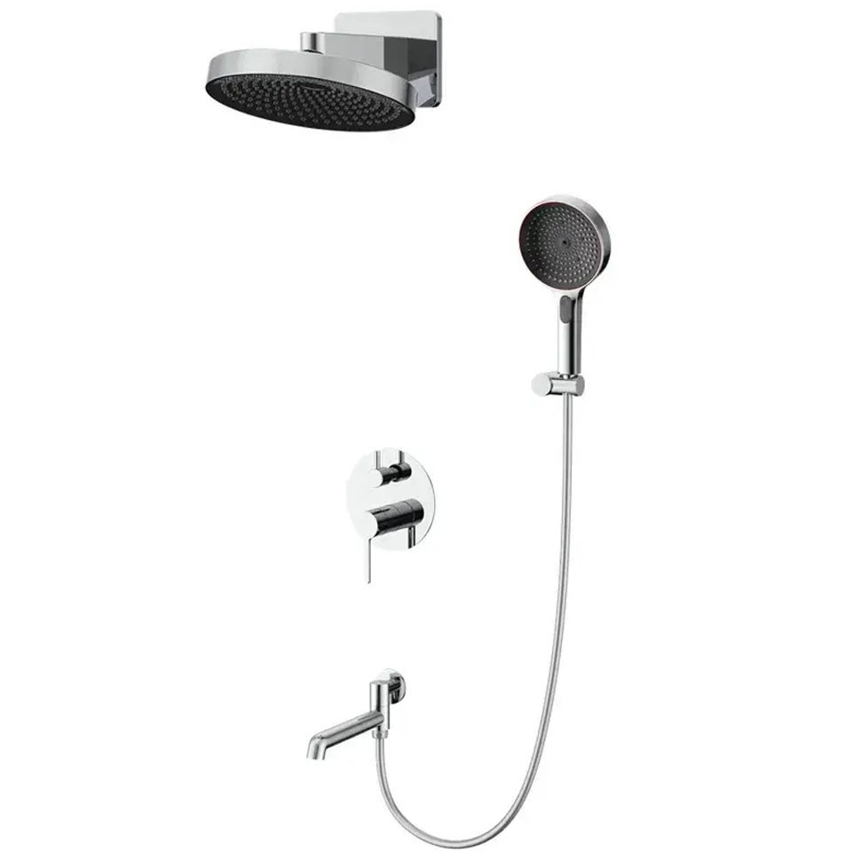 Система включає вбудований змішувач для зручного керування напором та температурою води, верхній тропічний душ для м'якого та рівномірного розподілу потоку, а також ручну лійку з трьома режимами роботи (стандартний, масажний та комбінований), що забезпечує додатковий комфорт. Гнучкий шланг робить використання максимально зручним у повсякденній експлуатації.