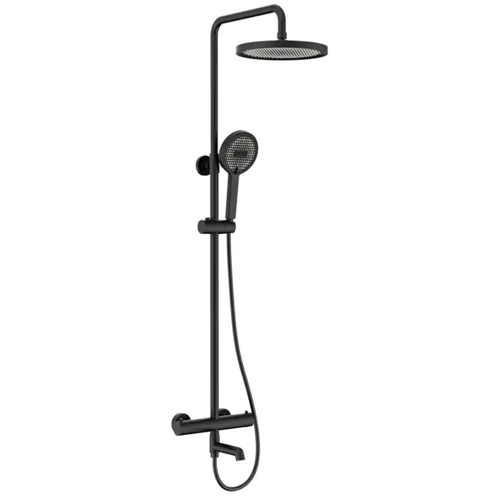 Модель оснащена термостатичним змішувачем, що автоматично підтримує задану температуру води, забезпечуючи безпеку та зручність навіть при перепадах тиску в системі. В комплект входить верхній тропічний душ для м'якого рівномірного потоку, лійка з трьома режимами роботи (стандартний, масажний і комбінований) і гнучкий шланг для максимального комфорту.
