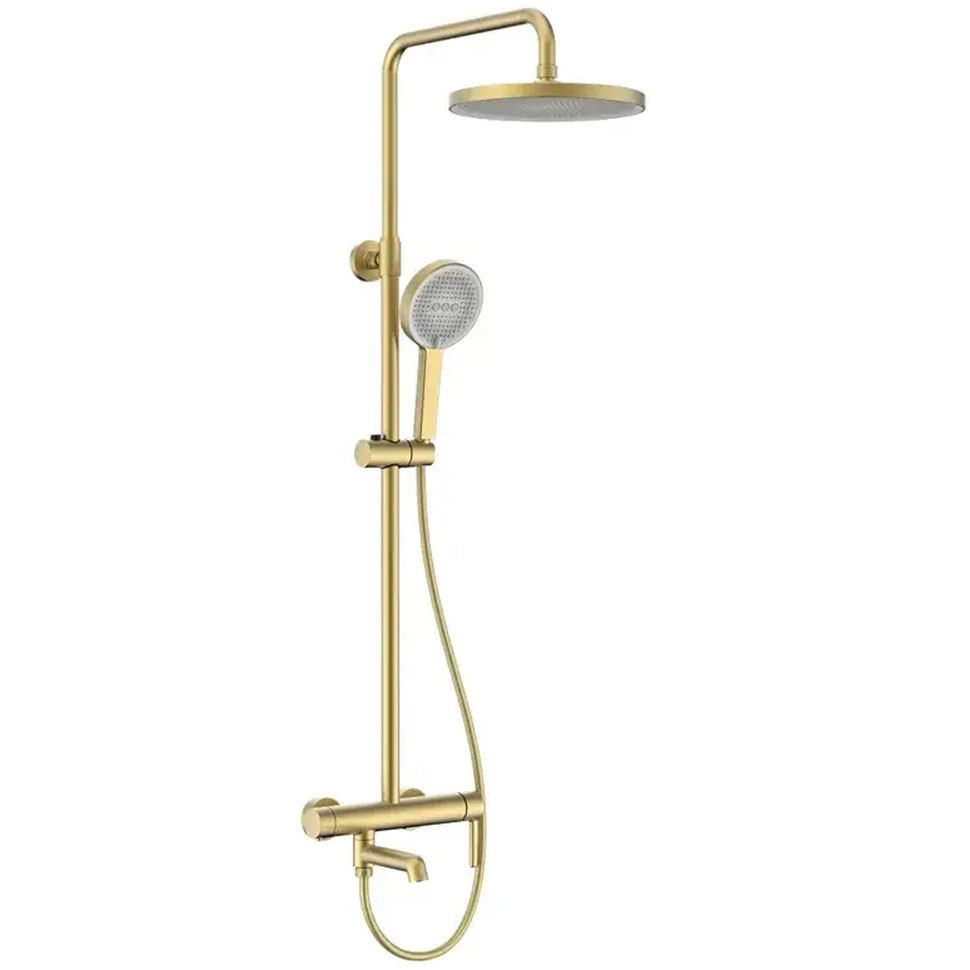 Душова колона зі змішувачем KB-56029-12 - це сучасне та зручне рішення для ванної кімнати, зроблене в Чехії. Модель виконана в класичному золото матовому виконанні, що надає їй універсальності та дозволяє гармонійно поєднувати з будь-яким інтер'єром. Конструкція включає верхній тропічний душ з рівномірним і м'яким розподілом води, лійку з трьома режимами роботи (масажний, комбінований і стандартний потік), а також гнучкий шланг для зручності використання.