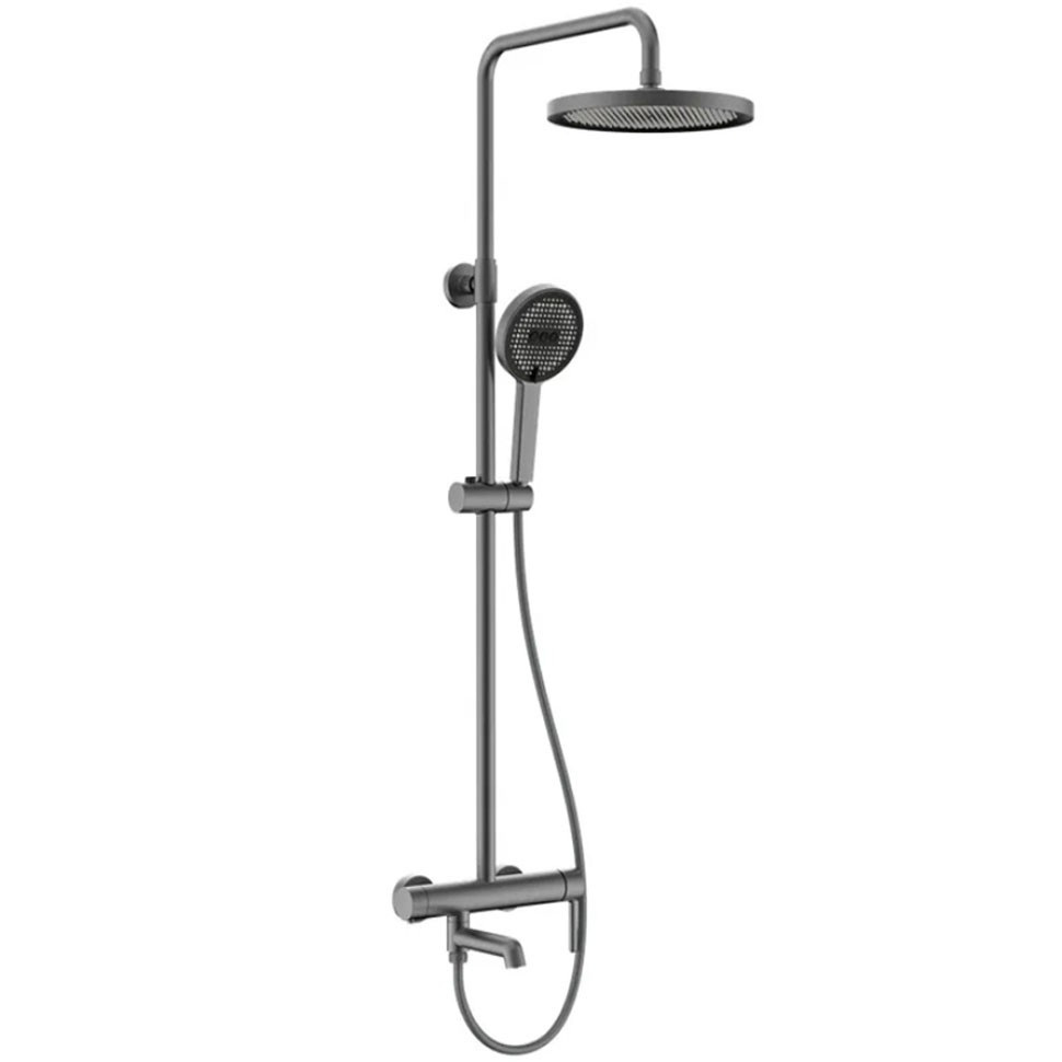 Душова колона зі змішувачем KB-56029-07 - це сучасне та зручне рішення для ванної кімнати, зроблене в Чехії. Модель виконана в класичному графітовому виконанні, що надає їй універсальності та дозволяє гармонійно поєднувати з будь-яким інтер'єром. Конструкція включає верхній тропічний душ з рівномірним і м'яким розподілом води, лійку з трьома режимами роботи (масажний, комбінований і стандартний потік), а також гнучкий шланг для зручності використання.