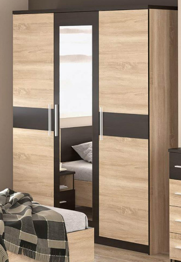 Шафа 156 см з дзеркалом розпашний 3Д Вероніка Меблі-Сервіс дсп дуб-самоа+венге Горіх світлий