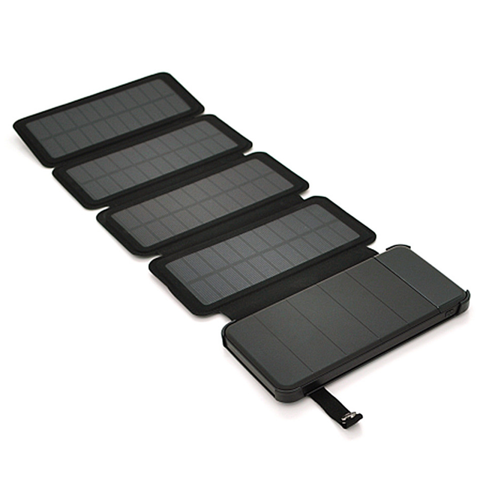 Портативное зарядное устройство Power Bank Solar 12000 mAh – внешний аккумулятор с солнечными батареями, надежный источник питания, который станет хорошим другом для путешественников, деловых и активных людей. Возможность зарядки от солнца - делает его по-настоящему незаменимым источником питания в любых условиях. Модель Power Bank Solar 12000 mAh с ярким светодиодным фонарем и 3 раскладными солнечными панелями. Отлично подходит для туризма, поездок, путешествий и экскурсий) На корпусе с боку размещена индикация заряда. Корпус аккумулятора выполнен из прочного структурированного противоскользящего пластика. Сверху расположен разъем для зарядки самого аккумулятора и 2 USB разъема для зарядки от него ваших устройств.