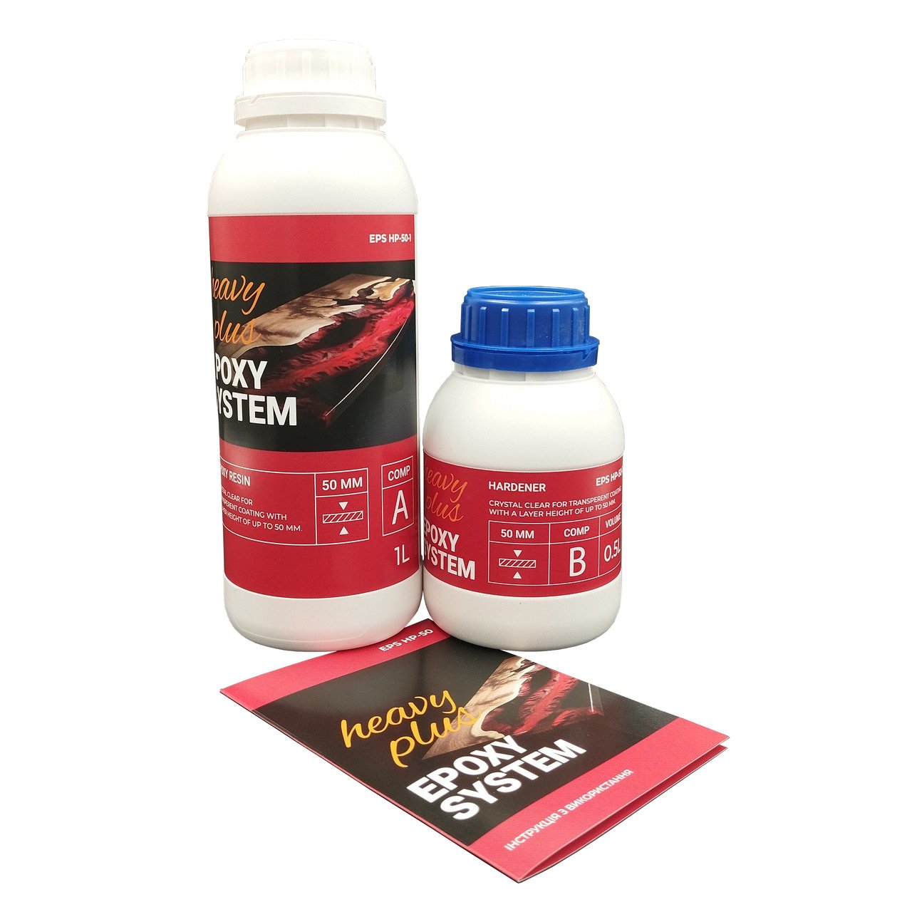 Прозрачная эпоксидная смола 1 кг + отвердитель Heavy Plus комплект для заливки столешниц, стен, полов, картин