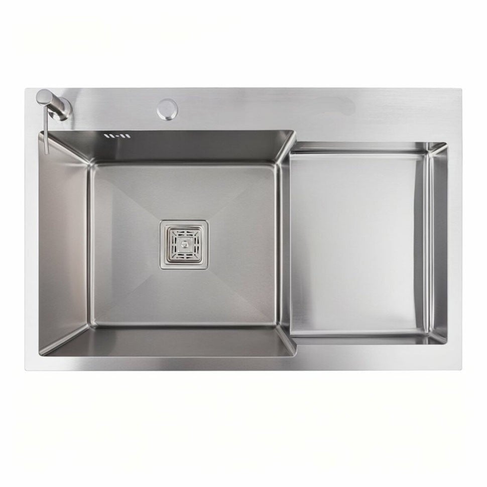 Габарити миття становлять 780×500 мм, глибина чаші – 230 мм, що дозволяє комфортно мити навіть великий посуд. Поглиблена полиця підвищує робочу зону, полегшуючи сушіння посуду або розміщення аксесуарів. Модель передбачає врізний або накладний монтаж, має отвір під змішувач та укомплектована сифоном з переливом, дозатором для миючого засобу та кріпленнями. Універсальний дизайн дозволяє встановлювати чашу як з правого, так і з лівого боку. Кухонна мийка Platinex Handmade - це вдале поєднання сучасного дизайну, практичності та європейської якості виконання.