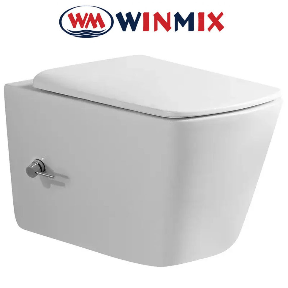 Унітаз-біде підвісний WINMIX PREMIUM QUADRO1301-R - це стильне та функціональне сантехнічне рішення 2-в-1 для сучасної ванної кімнати. 510×350×345 мм.
