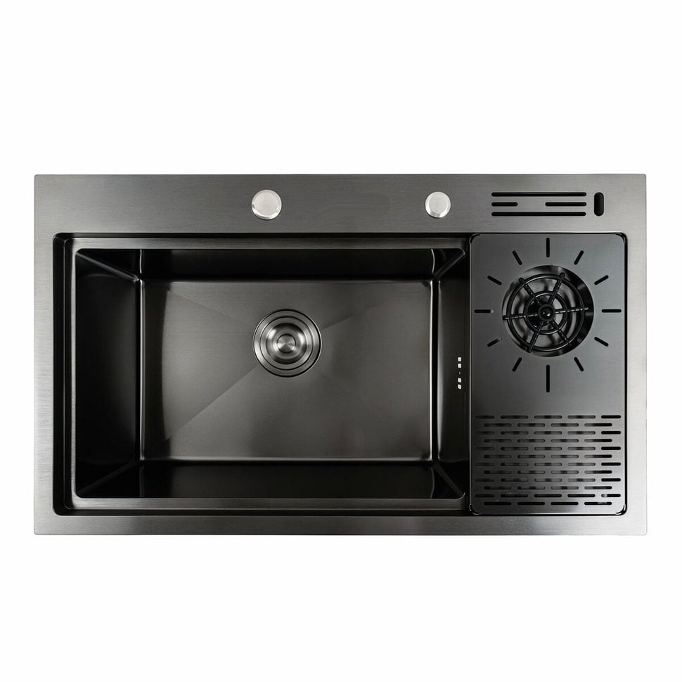 Кухонна мийка Platinex Handmade розміром 78×46 см в елегантному чорному виконанні - це сучасний елемент кухонної зони, що поєднує функціональність і стиль. Виготовлена з високоякісної нержавіючої сталі SUS 201, модель має міцну основу та стінки, що забезпечують зносостійкість та стійкість до перепадів температур, побутової хімії та ударів.