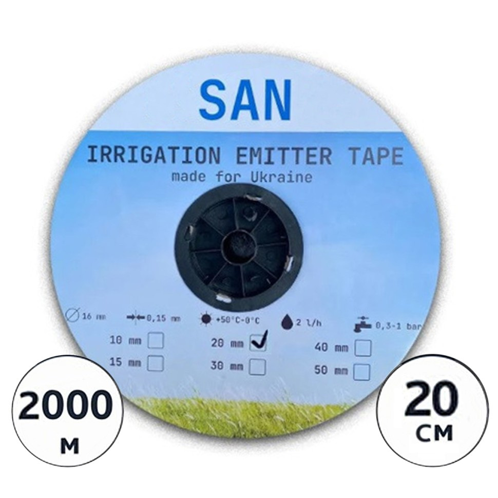 Стрічка емітерна для краплинного поливу SAN 20 см (2000м) 6mil, Корея