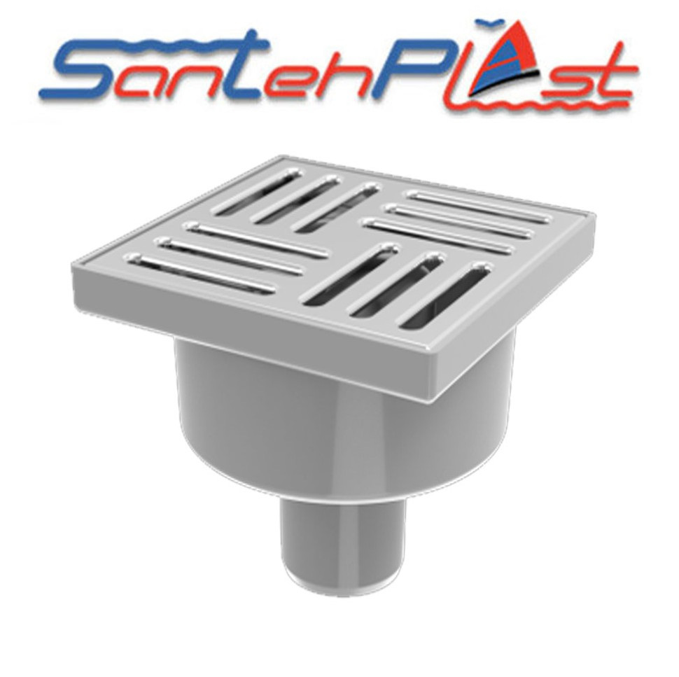Душовий трап SantehPlast TV-150-50.03 оснащений гратами з нержавіючої сталі розміром 150×150 мм та вертикальним випуском діаметром DN50. Пристрій має гідрозатвор, що запобігає проникненню неприємних запахів з каналізації. Трапи цієї моделі встановлюються в душових приміщеннях, громадських туалетах та роздягальнях. Основні функції трапу включають відведення відпрацьованої води до зливного каналу, запобігання попаданню в злив предметів, здатних викликати засмічення, створення герметичного з'єднання зі стикувальною зоною, захист від неприємних запахів та забезпечення додаткового аварійного зливу води у разі затоплення.