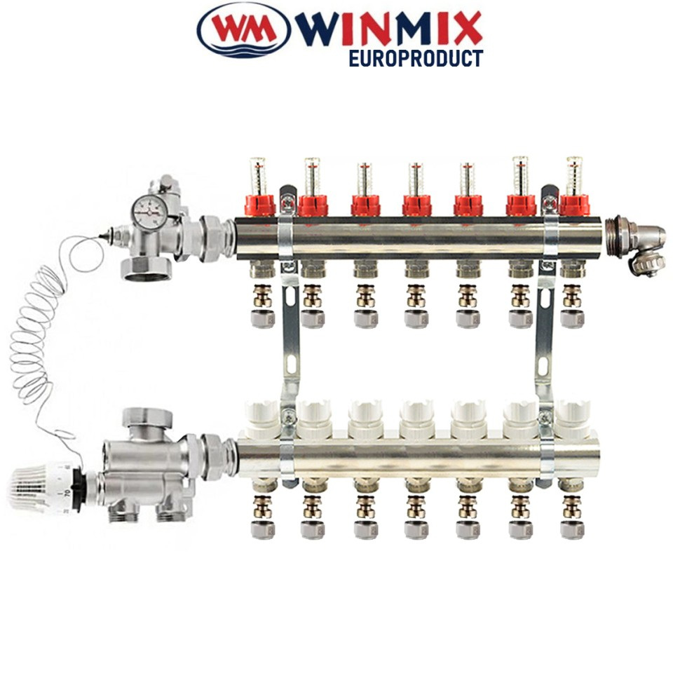 В асортименті колектор у зборі Winmix на 2-12 виходів з однією зливною групою.