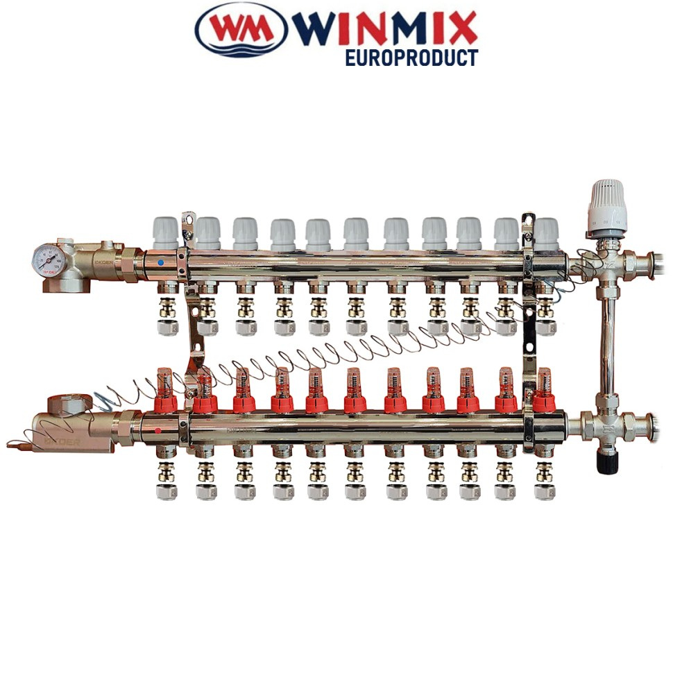 В асортименті колектор у зборі Winmix на 2-12 виходів з однією зливною групою.