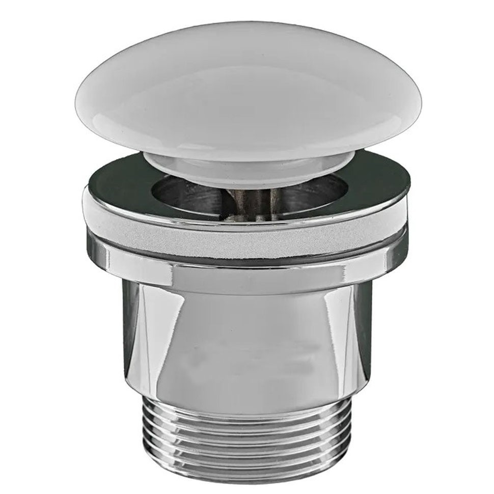 Донний клапан для умивальника PW-01-11 1 1/4" (кнопка) Біла керамічна накладка, Чехія