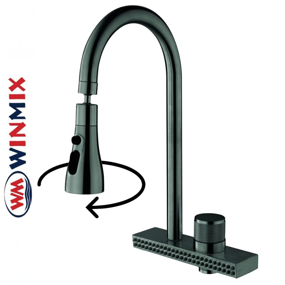 Змішувач для кухні з обертовим виливом FOL-017 GRAPHITE з водоспадом, нержавіюча сталь, Winmix Польща