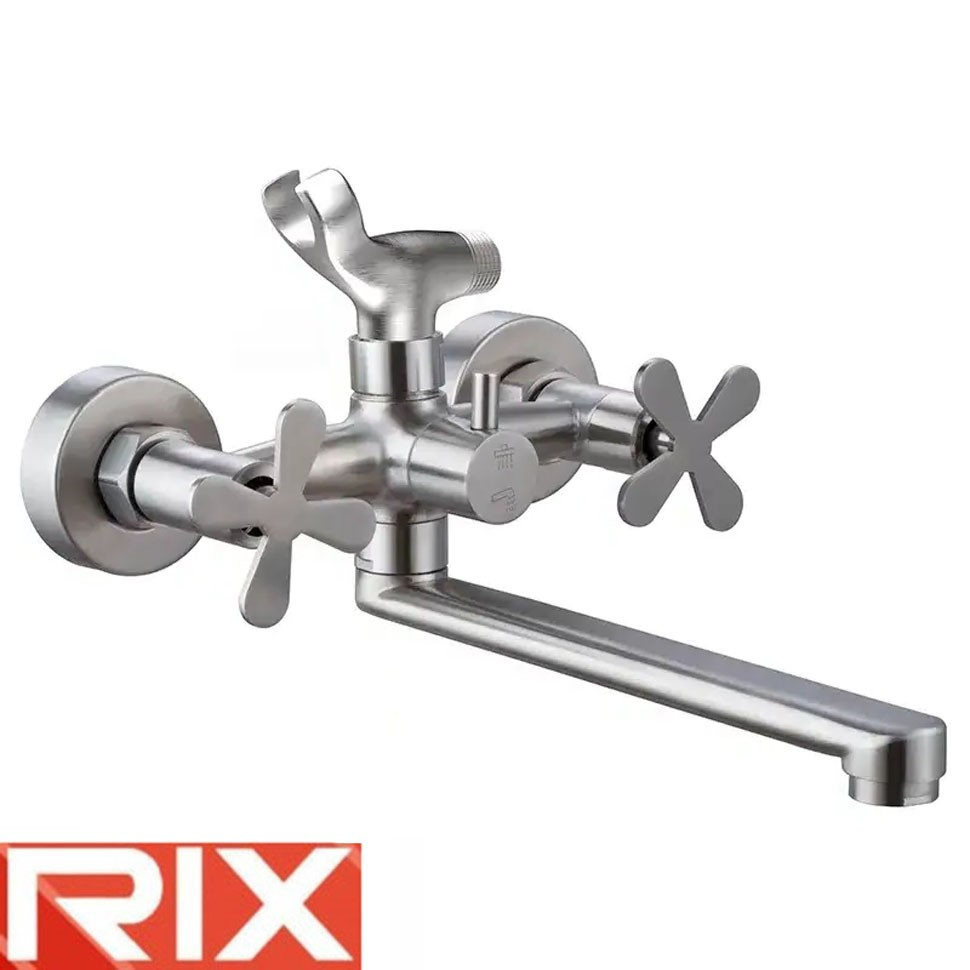 Змішувач для ванни Rix GTA (Chr-006-A) Euro виготовлений із високоякісної нержавіючої сталі марки SUS304, що забезпечує його довговічність та стійкість до корозії. Він оснащений довгим поворотним виливом, який забезпечує зручність при наповненні ванни та душі. Дворучковий механізм керування з керамічним картриджем дозволяє точно регулювати температуру та напір води. Дизайн змішувача поєднує в собі сучасний стиль і функціональність, що дозволяє гармонійно вписатися в будь-який інтер'єр ванної кімнати. Монтаж здійснюється на стіну, що забезпечує зручність встановлення та економію простору. Завдяки використанню якісних матеріалів та продуманої конструкції, цей змішувач забезпечує надійність та комфорт при використанні.