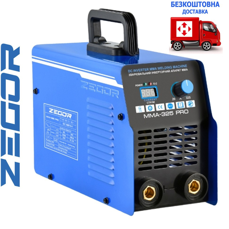 Інверторний зварювальний апарат Zegor MMA-325 PRO - є досить потужним і компактним апаратом, призначеним для зварювання постійним струмом за допомогою всіх видів електродів діаметром від 1,6 до 4 мм. Зварювані матеріали: вуглецева сталь, легована сталь, чавун, а також нержавіюча сталь (спеціальним електродом для нержавіючої сталі).