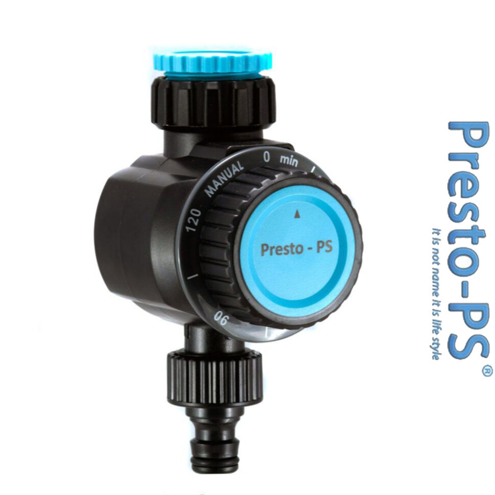 Таймер механічний Presto-PS (7735)застосовується у комбінації зі стандартними конекторами для побудови систем поливу з використанням гнучких садових шлангів та дощувачів. Дозволяє регулювати час поливу в межах від 0 до 120 хвилин. Процес монтажу не займає багато часу та не потребує великих зусиль. Корпус таймера виготовлений із якісного пластику, довговічний, стійкий до дії ультрафіолету та розчинів добрив. Для продовження терміну служби виробу рекомендується використовувати в системі подачі води фільтр грубої очистки.