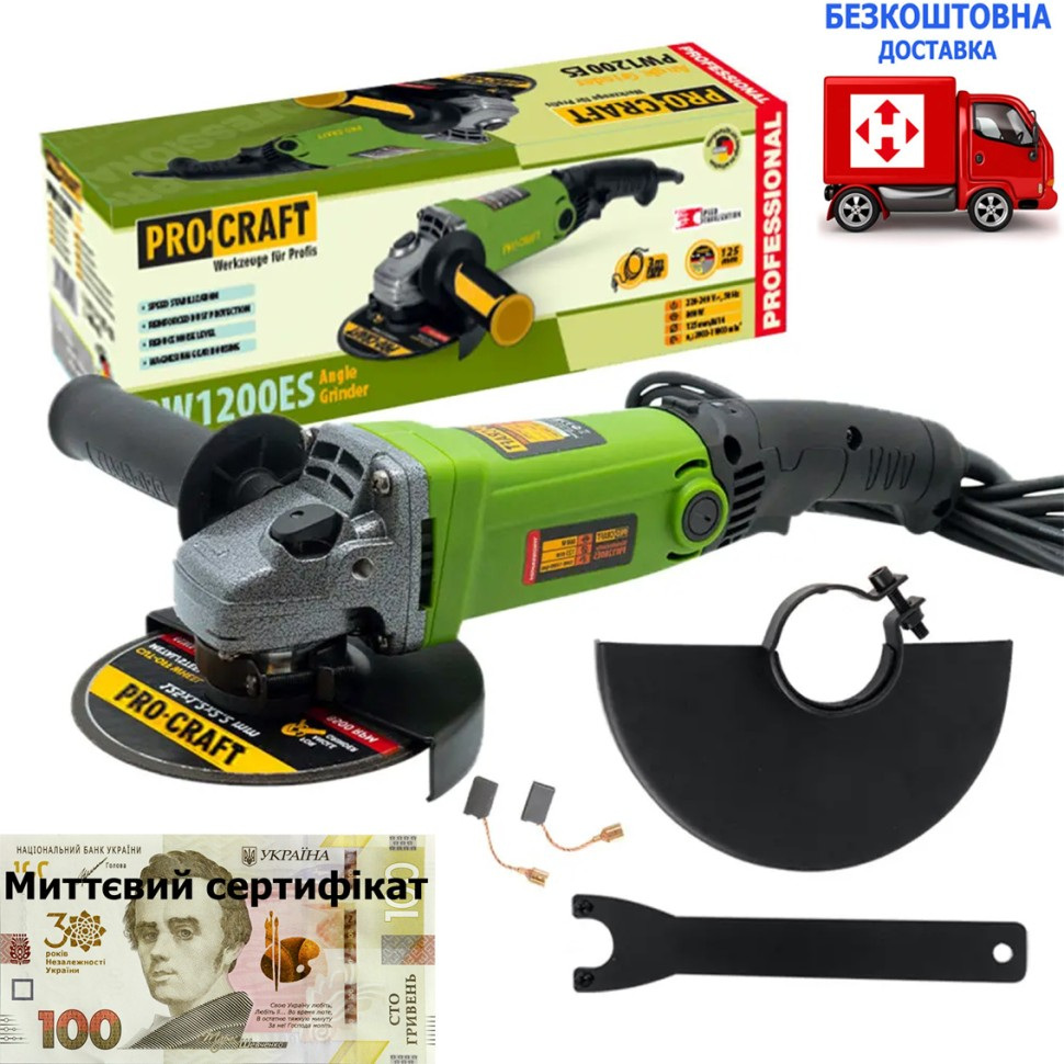 Кутова шліфувальна машина Procraft PW-1200ESвикористовується для відрізних та шліфувальних робіт з металу, каменю, бетону та інших робіт. Потужність даноїболгарки Procraftскладає 860 Вт, а діаметр відрізного кола 125 мм. Великою перевагоюболгарки Procraft PW-1200ES є невеликий розмір, що дозволяє підлаштовувати інструмент так, як вам буде зручно для виконання поставленого завдання. Також передбачена додаткова рукоятка встановлюється в трьох положеннях на корпусі редуктора. Характеризується високою швидкістю оборотів, отже - високою ефективність виконуваної роботи, і навіть експлуатаційної надійністю і простотою обслуговування. Болгарка має регулювання обертів для зручнішого використання у роботі.Має вентиляційні отвори для ефективного та природного охолодження. Захисний кожух забезпечить безпеку оператора та убереже інструмент від механічних пошкоджень.