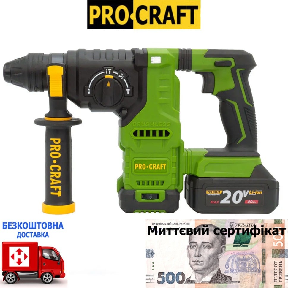 Акумуляторний перфоратор Procraft PHA30 Кейс (2 АКБ (20В, 4 А/г) та ЗП), купити який ви можете у нас, ― це сучасний, мобільний та функціональний інструмент, створений для ефективних робіт зі свердління та довбання.