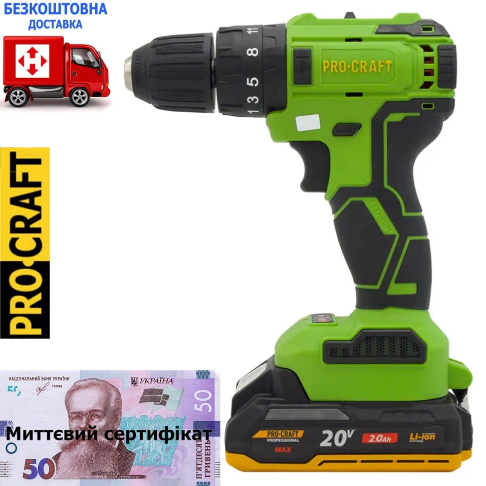 Акумуляторний шуроповерт Procraft PA18Li BL Ударний Безщітковий (1(20В*2А/г), у картоні)