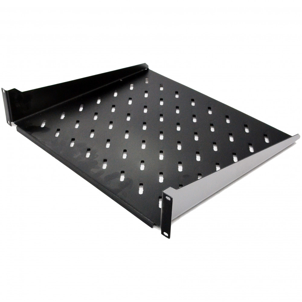 Полки 19" спроектированы с вертикальными ребрами жесткости, что позволяет выдерживать равномерно распределенную нагрузку до 12 кг без деформации.