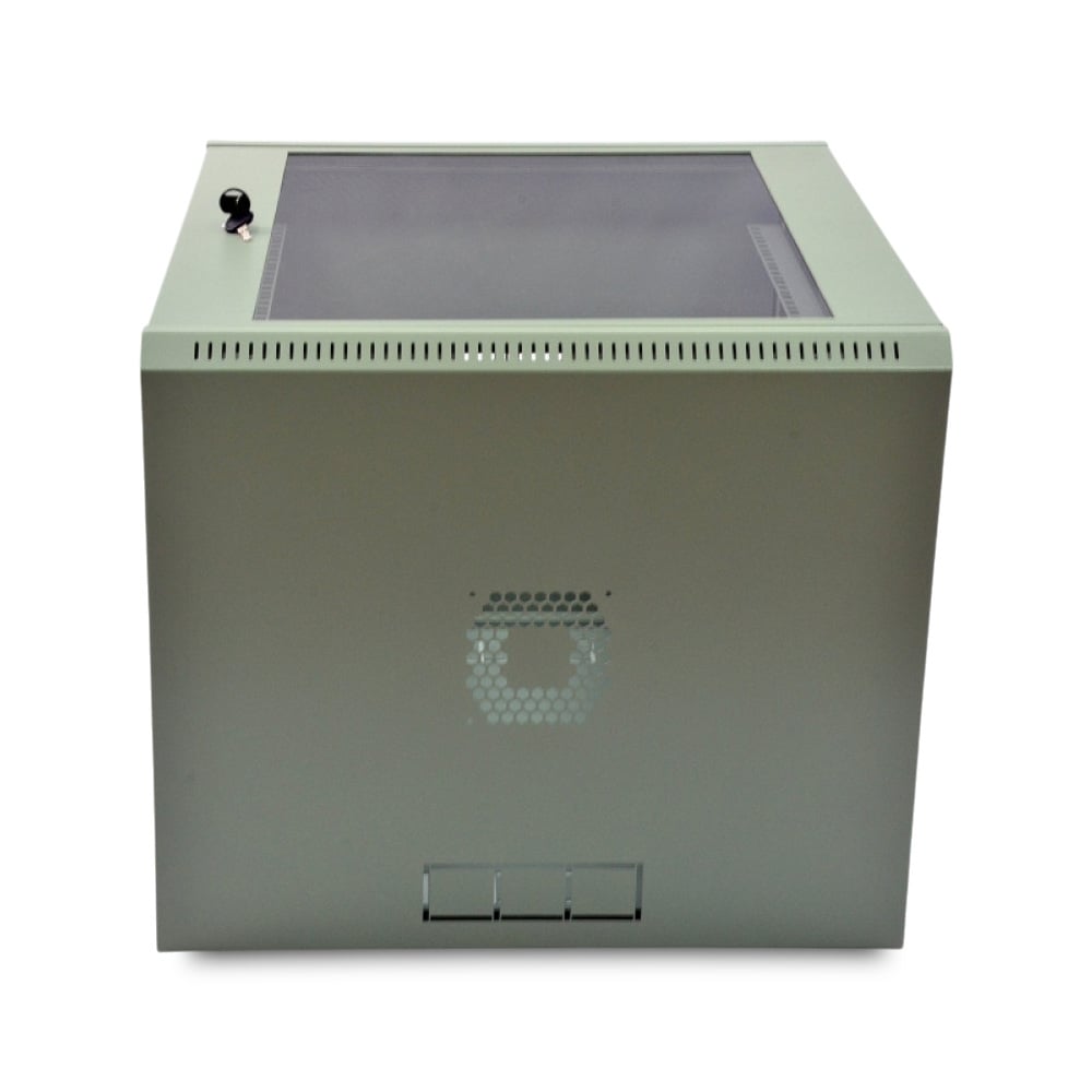 Конструкция шкафа состоит из крыши, нижней части, двух боковых рамок со сменными панелями, передней двери, задней панели и юнитовых стоек. Для удобства монтажа на стену и надежного крепления в конструкции предусмотрено 4 отверстия в тыльной части шкафа. Передняя дверь фиксируется поворотно-прижимным замком.