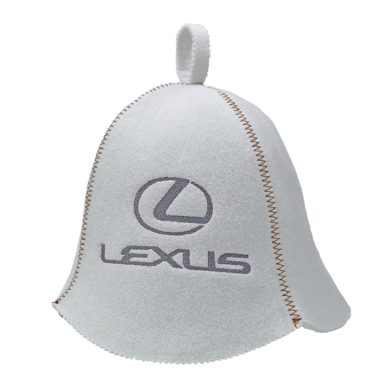 Банная шапка с вышивкой " Lexus" изготовлена из искусственного фетра. Цвет фетра белый.